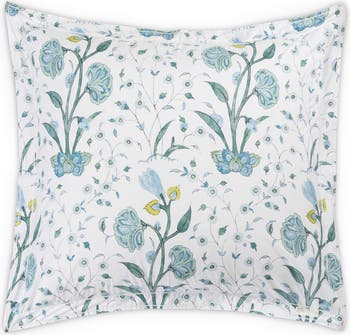 Dreamy flowers inspired by traditional Indian hand-block tiles bloom in greens and blues all over a plump, cool Euro sham made from crisp Italian cotton.