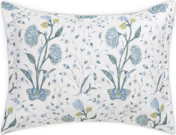 Dreamy flowers inspired by traditional Indian hand-block tiles bloom in greens and blues all over a plump, diamond-quilted sham made from crisp Italian cotton.