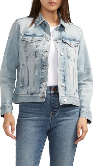 Heavy fading enhances the perfectly lived-in appeal of this shapely denim jacket that's a go-to layering essential.
