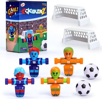 SOCCER FIDGET TOY GAME SET: Kick off the fun with Power Your Fun KickerZ fidget spinner game set including 4 player fidgets, 2 soccer goals, and 2 mini balls. Play solo or multi-player in this fast-paced tabletop soccer game for kids and adults. SPIN TO KICK ACTION: Squeeze and spin the fidget players to kick the ball, simulating real soccer play. A fun way to develop hand-eye coordination, reflexes, and focus while enjoying interactive play. EASY SETUP, INSTANT FUN: Simply place the goals, grab your player fidgets, and start the match! A quick and screen-free way to entertain kids at home, school, or on the go. MULTIPLAYER TABLETOP GAME: Perfect for head-to-head matches, this portable soccer fidget set encourages teamwork, competition, and laughter. Mini portable foosball soccer game for kids ages 6+ SENSORY FIDGET TOY FOR KIDS: Doubles as a sensory fidget toy that helps with focus, stress relief, and keeps kids engaged while providing hands-on fun. PORTABLE FIDGET TOY FOR KIDS: Each player measures 2.75” tall x 2.75” wide x 1” thick. Lightweight and easy to pack in a backpack for travel, road trips, or flights.