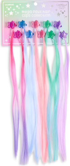 Your junior trendsetter will have fun switching up their looks with this assorted set of ombré faux hair pieces that clip right in.