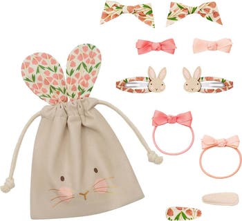 Let your kiddo mix, match and style away with this 10-pack of bows and ponytail holders stored in a darling bunny pouch that keeps accessories neatly organized.