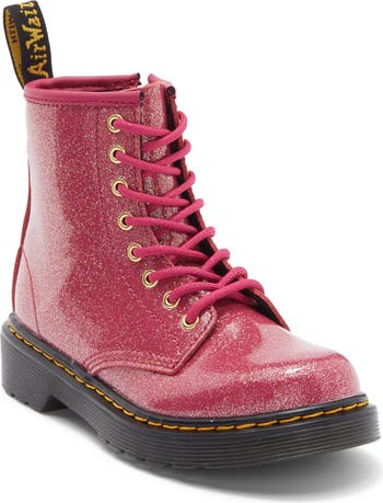 A Nebula Glitter finish brings the sparkle to this punk-inspired boot that's completed with the brand's unmistakable yellow stitching at the flexible sole.