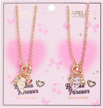 Your child will love celebrating the gift of friendship with this charming best friends necklace set.