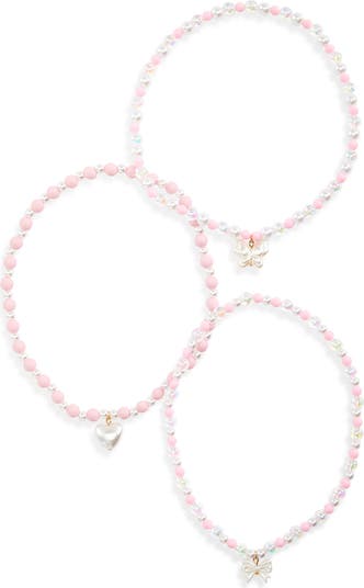 Pearly beads, hearts and bows bring kid-approved style to this set of necklaces that will add fun flair to their school-day looks.