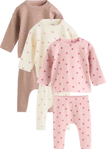 Getting your little one ready for the day has never been easier thanks to this three pack of coordinating top and leggings sets, each featuring a sweet print and dimensional ribbing.