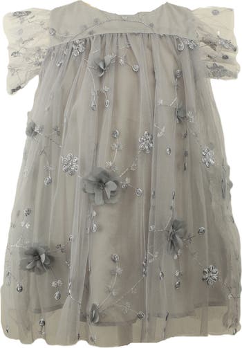 A mix of 3D and embroidered flowers will have your kiddo blooming with style at their next special event in this fluttery tulle dress.