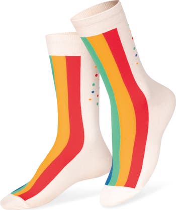 Put some pep in your kid's step with these cotton-rich crew socks in a fun rainbow pattern that brightens even the dreariest days.