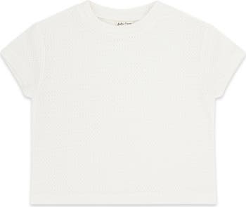 Open-stitch knitting gives a cool crocheted look to this cover-up top that your child will love for layering.