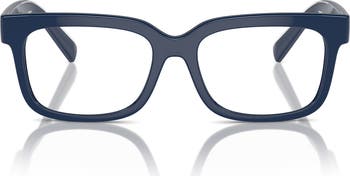 Classic rectangular frames made from lightweight plastic define kid-sized glasses made in Italy and stamped with signature logos at the temples.