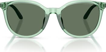 Italian-made, kid-sized sunglasses are subtly branded at the temples and fitted with full-coverage gradient lenses that offer 100% UV protection.