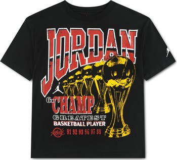 Burnished trophies celebrating MJ's six championship wins brings winning energy to a T-shirt made for kids who like to shoot and score in the softness of breathable cotton. Perfect for on-court comfort and off-court cool, it makes a high-points addition to any active wardrobe.