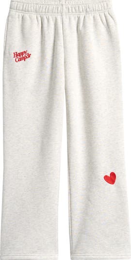 Embroidered motifs of love decorate wide-leg sweatpants cut from an ultrasoft and comfy cotton blend.