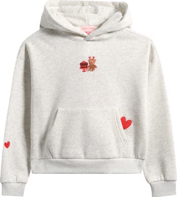 Embroidered motifs give a recipe for love at the back of a comfy cotton-blend hoodie your child won't want to take off.