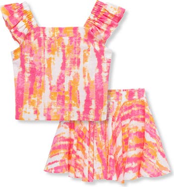 Kids' Abstract Print Linen Blend Tank & Skirt Set