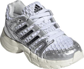 Drawing inspiration from Y2K runners and designed to go the distance on your style game, this kid-size sneaker cages a breathable mesh upper in a mix of metallic overlays, angled 3-Stripes and curvy lace anchors. The chunky base and a cushy inset under the heel ground every step with stability, comfort and sneakerhead approval.