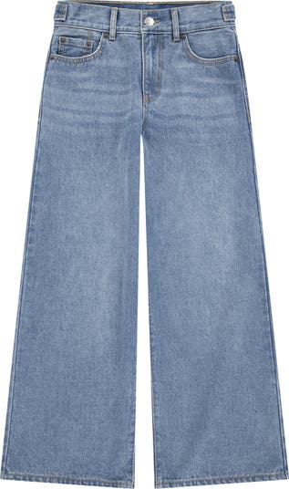 An adjustable-snap closure waist ensures an ideal fit for these wide-leg jeans made from nontstretch denim so they keep their shape with every wear.
