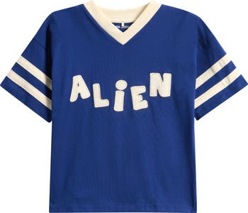 Greeting Earthlings, we come in comfort: this retro T-shirt is made from soft, breathable organic cotton and features playful 'Alien' appliqués perfect for your space explorer.