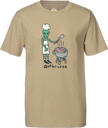 An alien visitor is stoked to master the grill on a cotton-jersey T-shirt your earth-dwelling child will love.