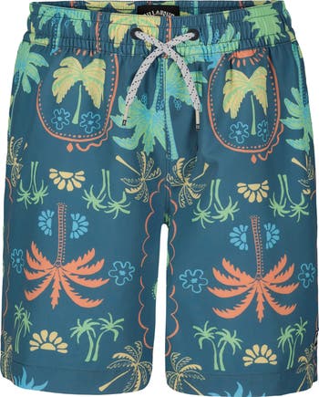 Your child will be ready for a pool day in lightweight swim trunks featuring a lively print, water-repellent coating and adjustable drawstring waist.