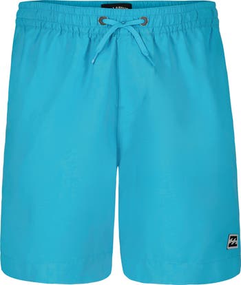 Your child will be ready for a pool day in lightweight swim trunks featuring an easy-to-spot hue, water-repellent coating and adjustable drawstring waist.