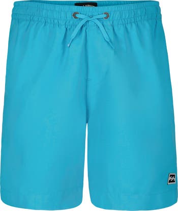Your child will be ready for a pool day in lightweight swim trunks featuring an easy-to-spot hue, water-repellent coating and adjustable drawstring waist.