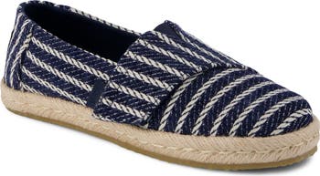 Topstitched jute trim lends a warm-weather vibe to an espadrille-style slip-on crafted with a durable cotton-canvas upper and a CloudBound foam-cushioned insole.