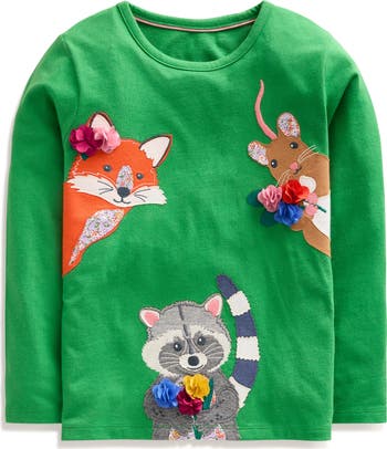 3D blooms accent the trio of sweet woodland creatures appliquéd on this cotton-jersey T-shirt.
