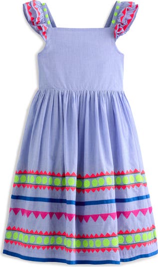 Sweeten your child's look with this lightweight cotton sundress embroidered with a mix of geometric stripes and finished with a smocked panel at the back for a perfect fit.