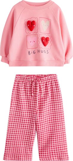 Treat your little love bug to this cozy set that pairs a 3D heart-appliqué sweatshirt with wide-leg gingham pants.