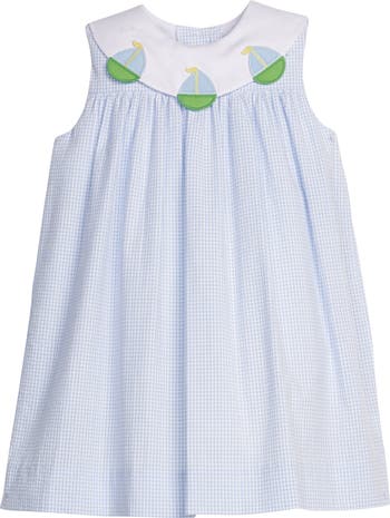 This sleeveless silhouette features a bib collar trimmed with appliques. And baby sister can perfectly match in our Bib Bubble!