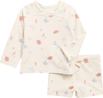 They'll love to splash and play in this two-piece swimsuit featuring a long-sleeve top and matching bottoms.
