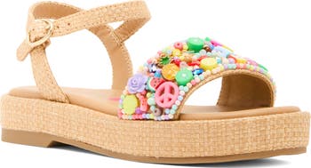 Colorful beads make a playful statement on this ankle-strap platform sandal that your youngster is sure to love.