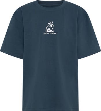 Palm trees, ocean waves and rising suns invite easy comfort in this tropical-beach T-shirt made for splashing or relaxing in the softness of stretchy cotton-blend jersey. Perfect for playtime, down time and every time in between, it makes a great addition to any active wardrobe.