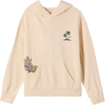 Faded island scenery transports your kid to the tropics in this cotton-rich fleece hoodie that easily breezes between school days and vacay.