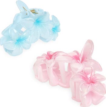 Secure your kiddo's tresses with this assorted two-pack set featuring charming flower claw clips.