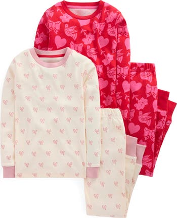Birdies, bows and blooms make bedtime more fun in a two-pack of kids' cotton pajamas designed like long-sleeve T-shirts and joggers. The knit fabric breathes easy and offers plenty of stretch to make drifting off to dreamland extra comfy.