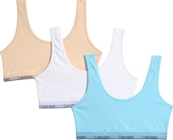 They'll stay comfy all day in soft bralettes designed with stay-put logo-knit banding and a stretchy cotton fabrication.