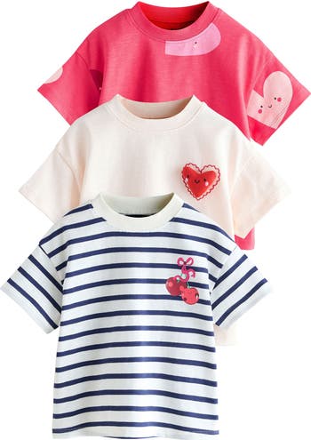 An assortment of graphics, appliqués and hues define a fun three-pack of T-shirts in comfortable, breathable cotton. Perfect for playtime, down time and every time in between, they're great for building your kiddo's active wardrobe.