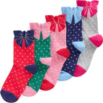 Bring a bit of vibrancy to your kiddo's closet with a stacked pack of cotton socks detailed with pretty bows and dainty dots.