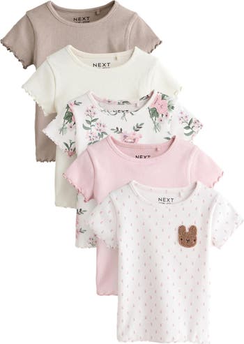 Keep your kiddo well-outfitted in this assorted set of stretchy ribbed cotton T-shirts featuring a fun mix of solid and patterned options.