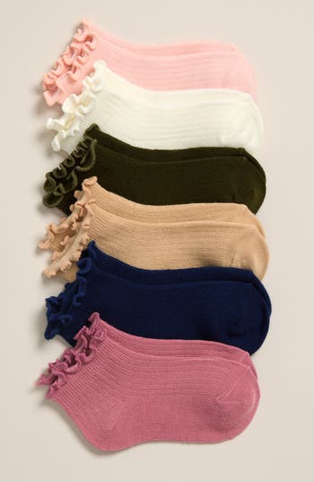 They'll love the playful lettuce-edge details that top this pack of six pairs of quarter socks.