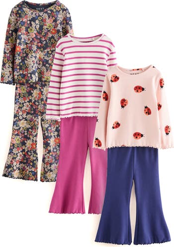 Little ones will have fun mixing and matching these long-sleeve tops and flared leggings featuring cute prints, retro lettuce edges and stretchy ribbed cotton.