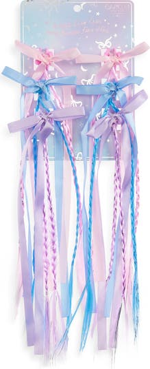 Little trendsetters will love the sparkling tinsel and bold colors of these clip-in faux-hair extensions that let them easily switch up their style.