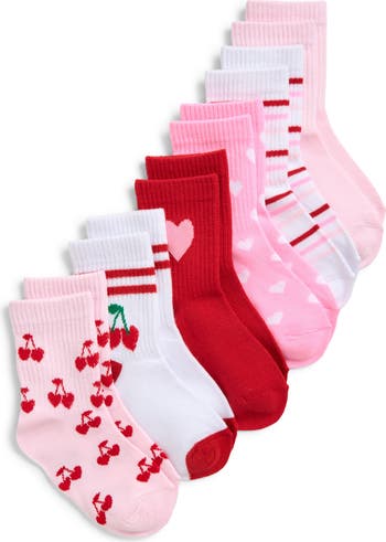 They'll love the assortment of fun patterns and colors on these stretch-enhanced crew socks coming in a pack of six.