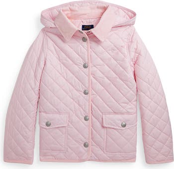 Your young trendsetter is ready to take on the day no matter what the weather has in store with this cozy quilted jacket complete with a shower-shielding hood and a soft corduroy collar.