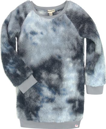 Softly mottled faux fur brings delightful texture to a long-sleeve dress that's sure to keep your kiddo cozy.
