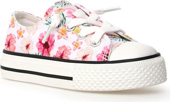 Kids can kick back in comfort with this flowery sneaker boasting a low-top design and elastic laces for a flexible fit.