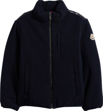 Built to deliver lightweight warmth without bulk, this kid-sized jacket branded with an iconic logo patch features a polar fleece front and down-filled quilted-nylon back