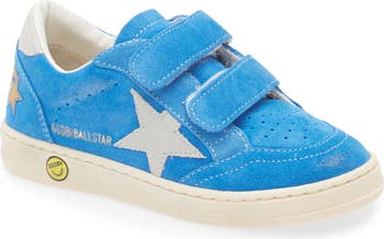 Inspired by '80s American college–basketball shoes, this cobalt low-top sneaker is lightly scuffed and smudged to look like your kid's already made the varsity squad.